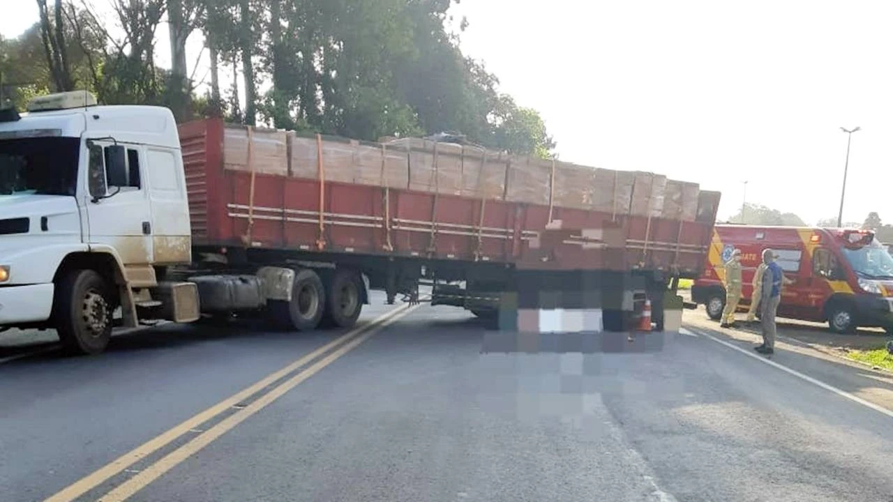 No entanto, o motociclista, que seguia no sentido contrário (Cascavel/Laranjeiras do Sul) colidiu violentamente no último rodado da carreta.