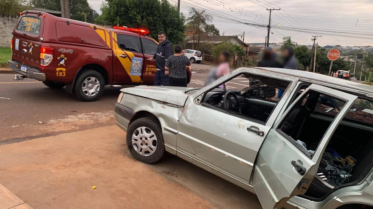 Um homem ficou ferido na manhã deste sábado (03), após capotar veículo no Bairro Brasília, em Cascavel.