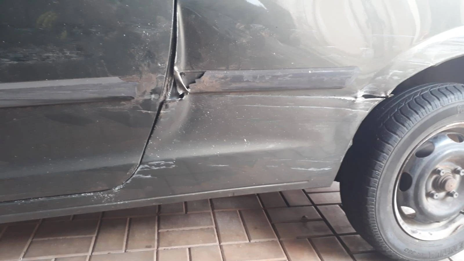 O carro do internauta acabou danificando a roda, e a lataria lateral e pede que o autor se identifique...