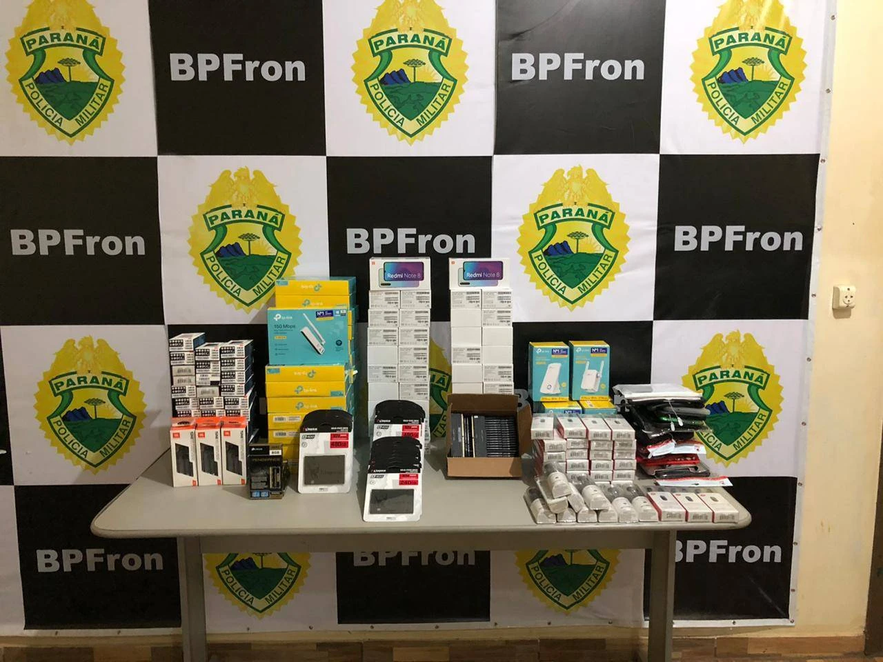 O veículo e produtos foram encaminhados à Receita Federal em Guaíra-PR. O condutor do veículo foi qualificado e liberado.