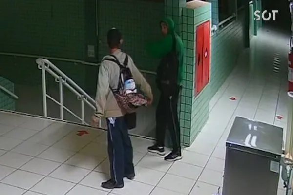 Rapidamente a dupla subtrai fios de cobre do para-raios e suportes dos mesmos e panelas de alumínio utilizadas para fazer as refeições das crianças e fogem do local.
