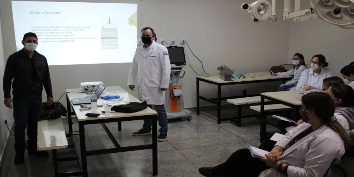 Desde quarta-feira (27), os profissionais estão tendo a oportunidade de acompanhar o histórico da ventilação mecânica, a aplicabilidade do equipamento na área da saúde até o manuseio do aparelho de alta tecnologia dentro do Hospital de Retaguarda.