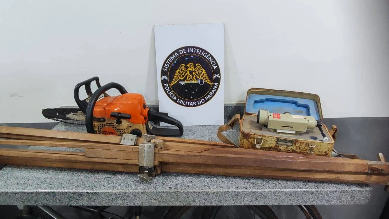 Com ele foram localizados a motosserra, o equipamento de agrimensor e R$ 348 reais, quais foram encaminhados para a 15ª SDP.