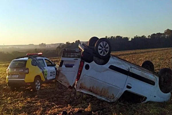 Na manhã desta terça-feira (04), policiais militares de Santa Helena foram informados de que na Linha Dona Oliva, haveria um veículo capotado e diversas caixas com cigarros estariam espalhadas ao lado do automóvel e seu condutor estaria caído próximo ao carro.