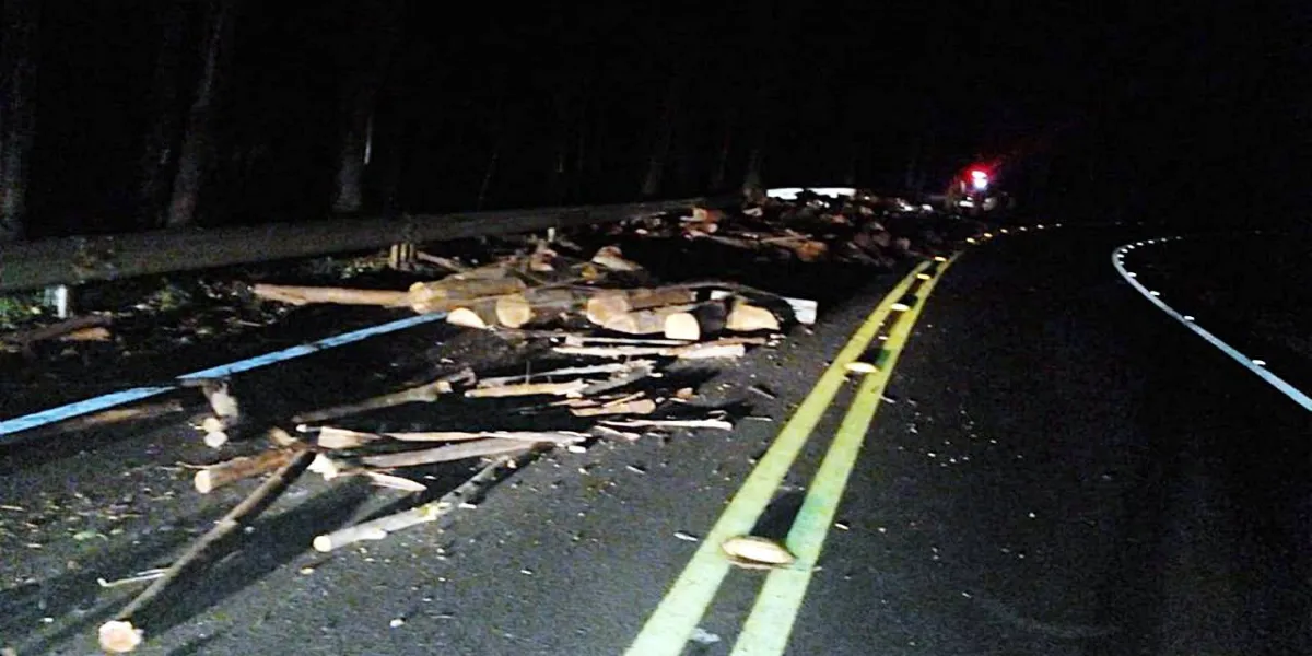 Carga de lenha cai sobre a pista e causa transtornos na PR-573
