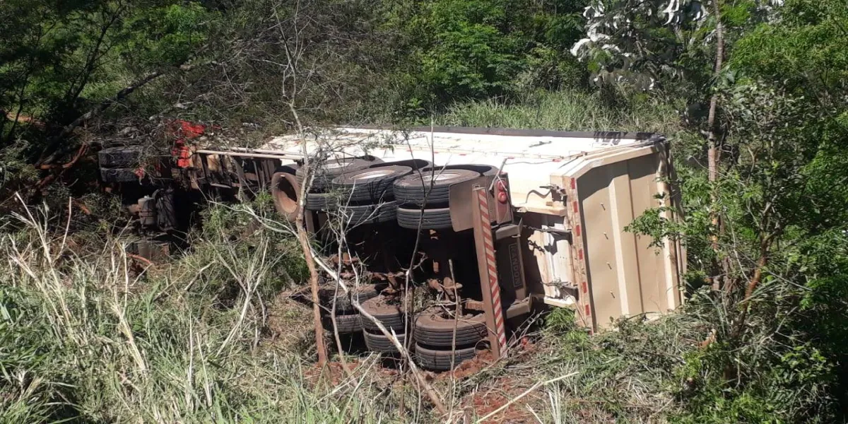 Um tombamento de caminhão foi registrado na última terça-feira (05/10), na PR-488 em Diamante do Oeste.