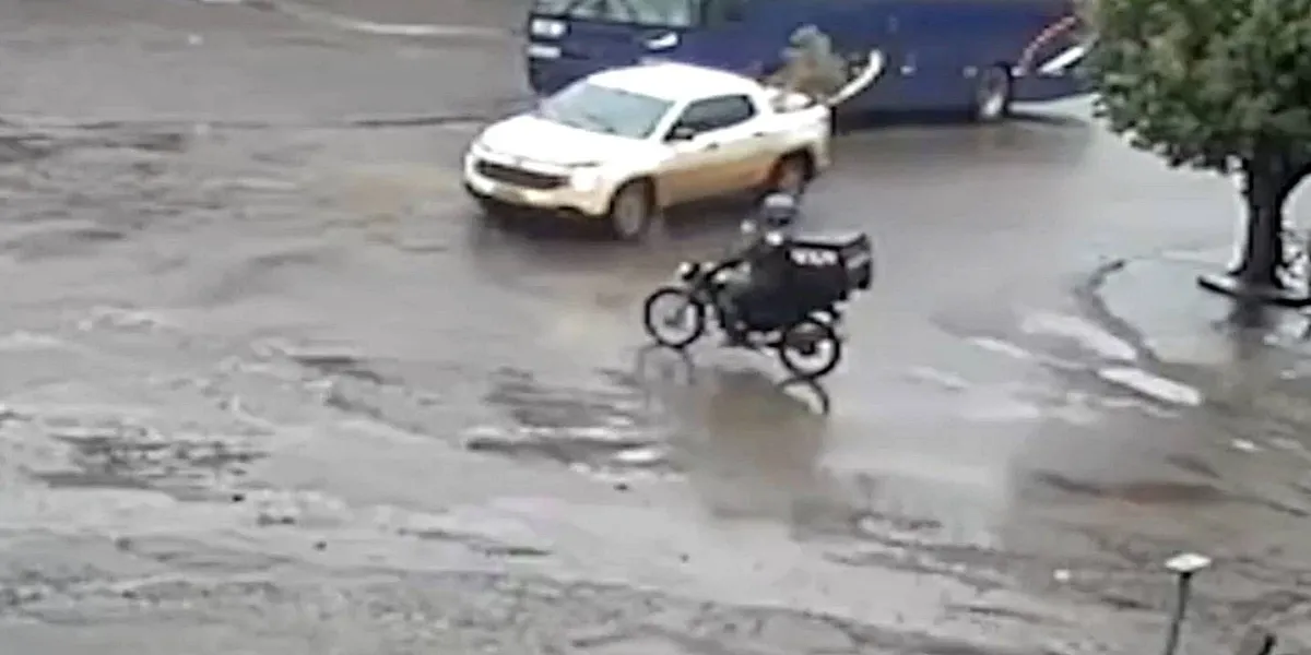 Câmera de segurança registra colisão que deixou motociclista de 23 anos ferido no Bairro Cataratas
