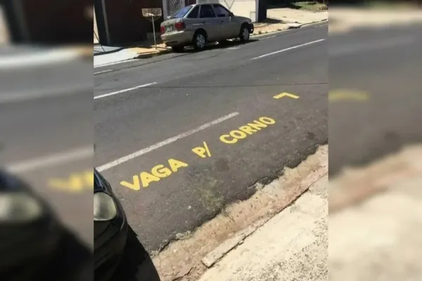 Um morador de Garça (SP) pintou na rua, na frente da garagem da casa dele, a inscrição “vaga p/ corno”, e o caso viralizou nas redes sociais.