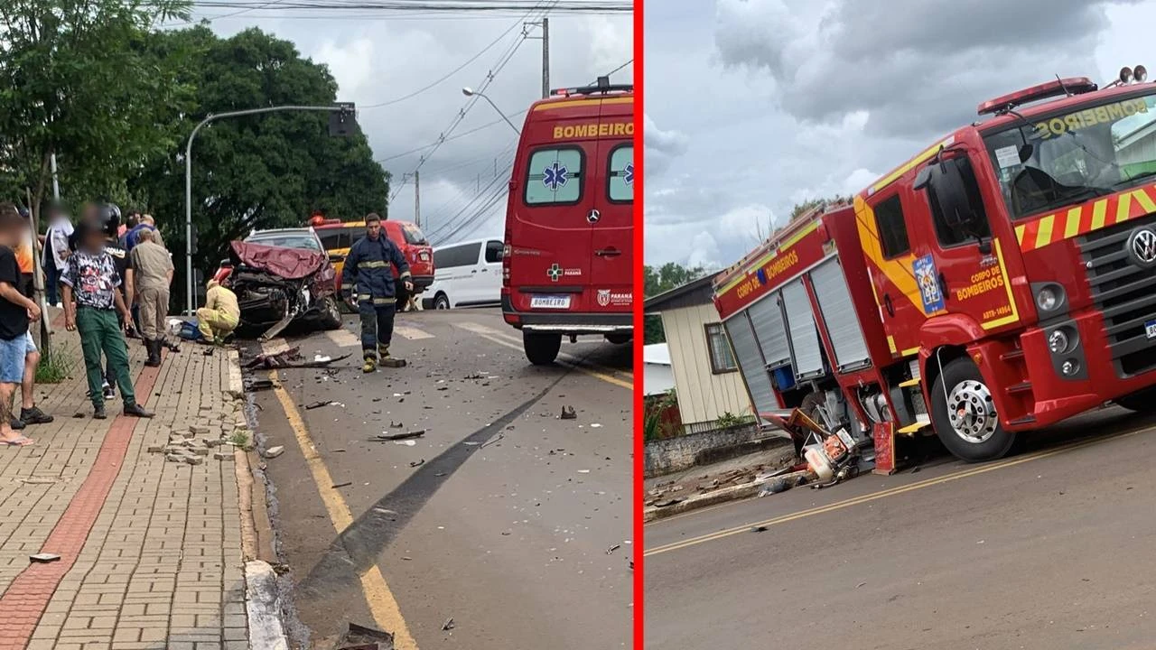 Caminhão do Corpo de Bombeiros se envolve em grave acidente de trânsito no sudoeste do Paraná; vídeo