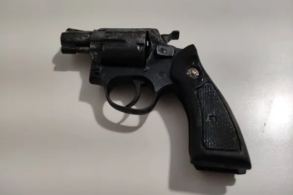 Junto com o perito criminal, os policiais localizaram um revólver calibre 38, ao lado do local aonde foi encontrado um corpo carbonizado nos escombros.