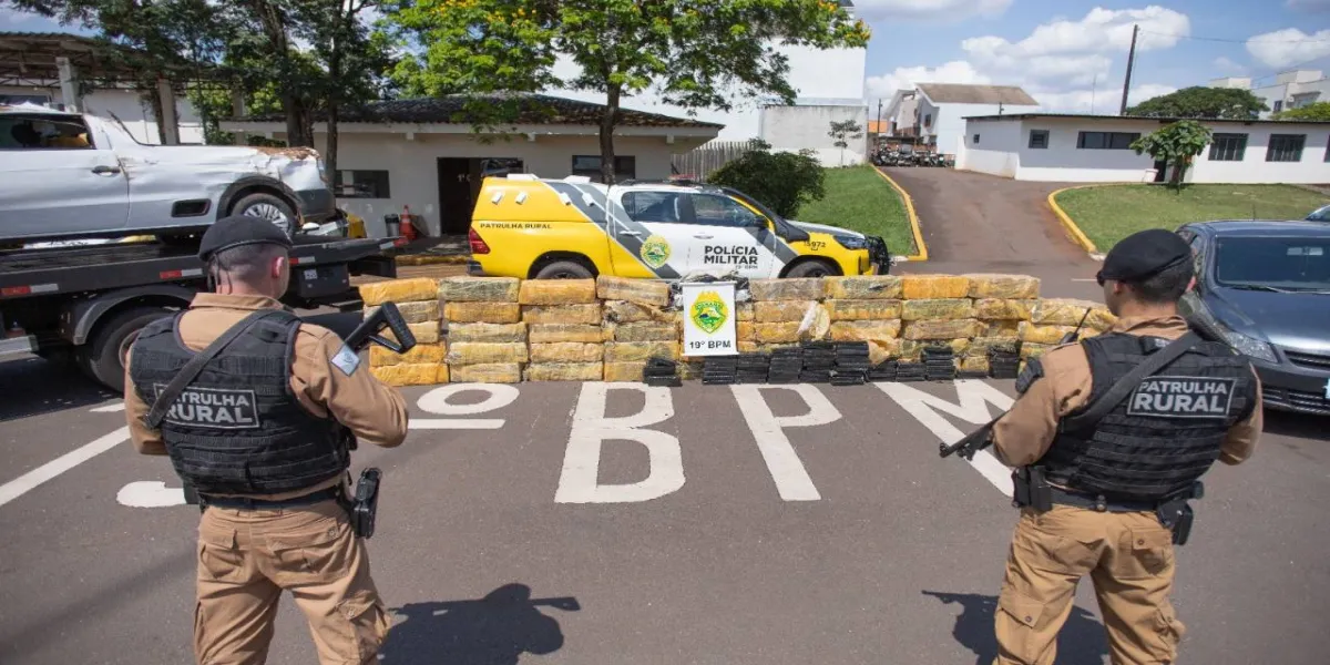 Policiais do 19° Batalhão da Polícia Militar apreenderam mais de uma tonelada de maconha durante patrulhamento na cidade de Ouro Verde do Oeste, nesta segunda-feira (17).