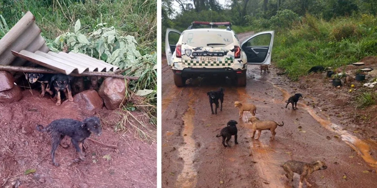 Onze cachorros são encontrados abandonados na área rural de Cascavel