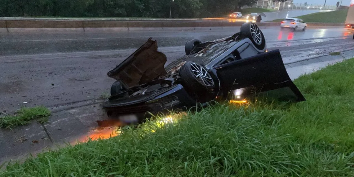 Após aquaplanar, veículo capota na PRc-467, em Cascavel