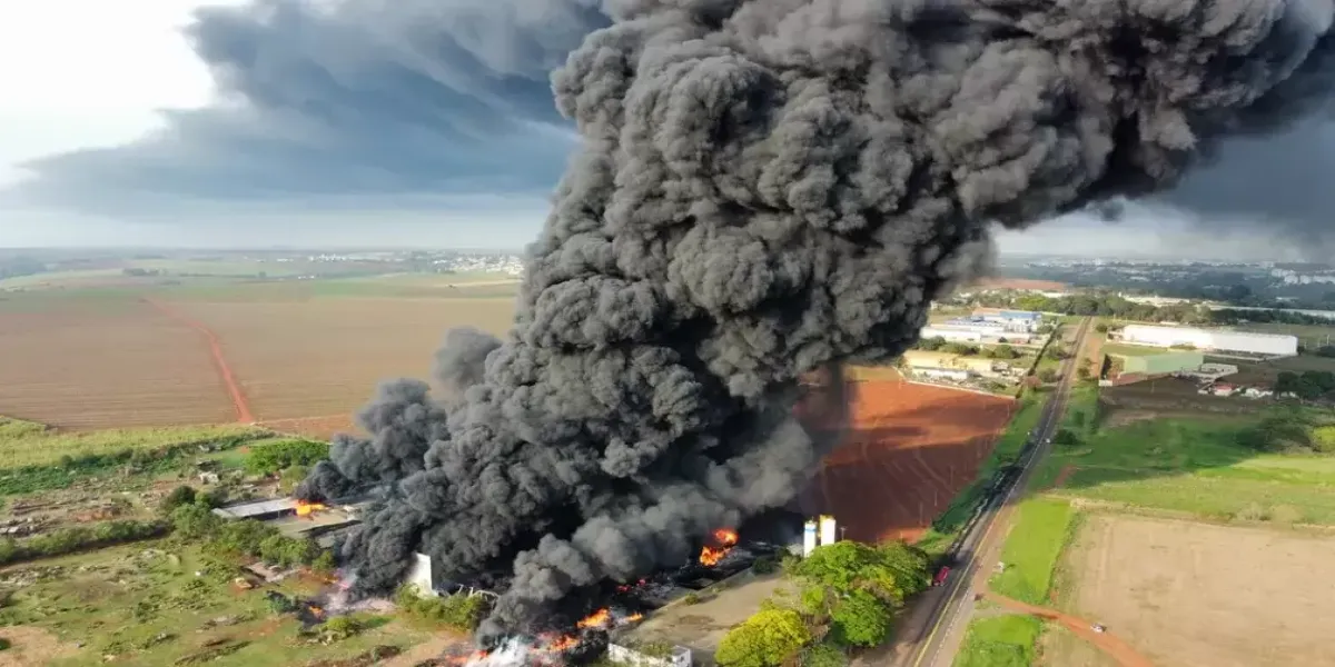 Imagens aéreas mostram destruição causada por incêndio em empresa de lubrificantes