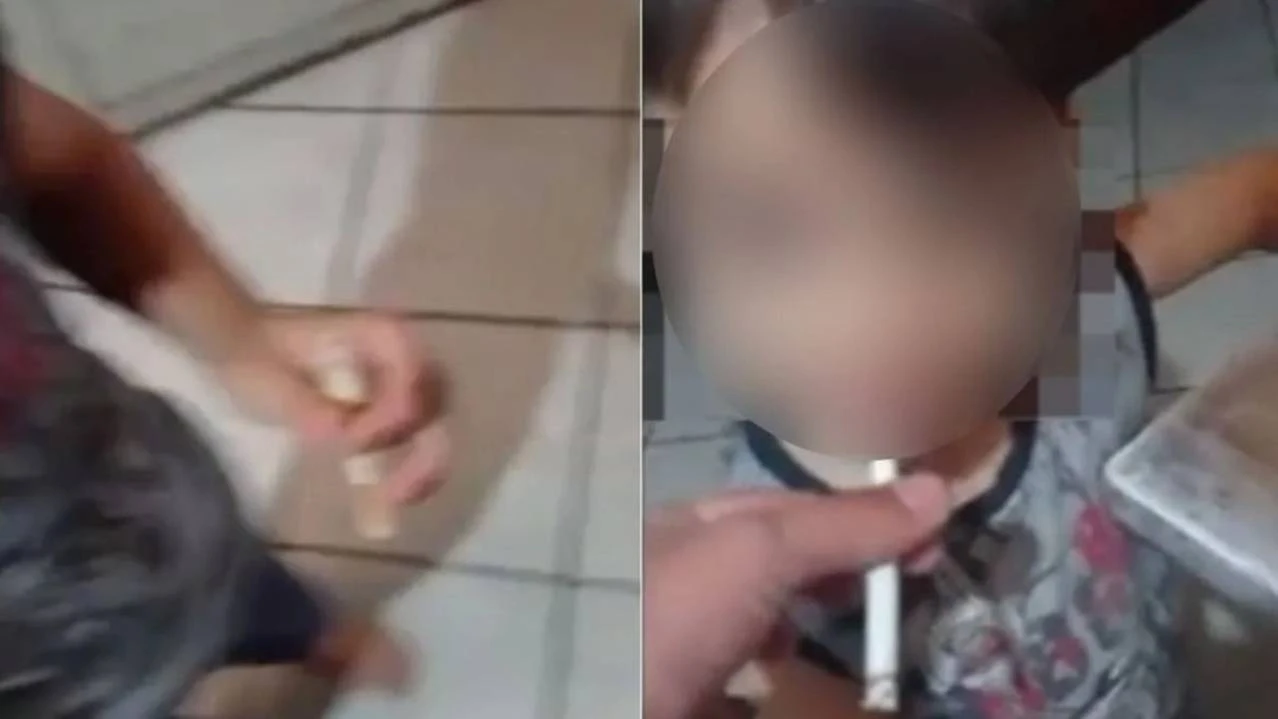 Segundo a polícia, em um vídeo gravado pelo suspeito é possível ver um prato com drogas em cima do fogão. Na sequência, o homem oferece um cigarro aceso para o menino, que não aceita.