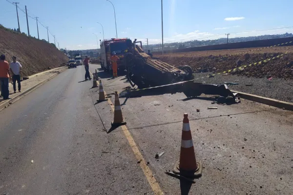 Na manhã desta terça-feira, 25, equipe de policiais rodoviários federais atenderam um acidente no km 346, BR 277, sentido Curitiba, onde um Ford Fiesta de Guarapuava saiu de pista, colidiu na lateral de um caminhão IVECO/EUROTECH 450E37TN1 de Curitiba, e capotou.