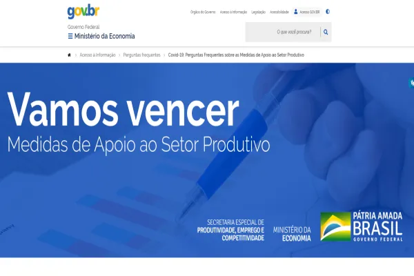 Página da Secretaria de Emprego, Produtividade e Competitividade, do Ministério da Economia, reúne esclarecimentos sobre medidas oficiais que auxiliam o setor produtivo a superar a pandemia...
