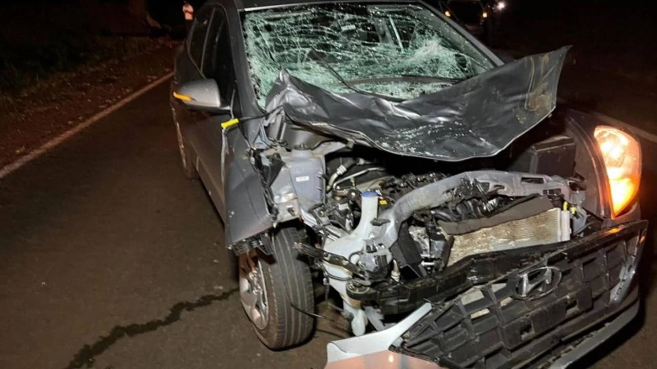 Boi atravessa pista e HB20 fica com frente destruída na PR-182 em Maripá