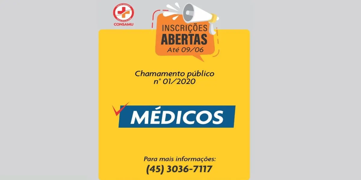 O Consórcio de Saúde dos Municípios do Oeste do Paraná – CONSAMU, torna público, que se encontra aberto o CHAMAMENTO PÚBLICO Nº 01/2020 objetivando o CREDENCIAMENTO DE PESSOAS JURÍDICAS prestadoras de serviços médicos para atuarem no Hospital de Retaguarda de Cascavel – HRC, sito à rua Domiciano Theobaldo Bresolin, 352 – Bairro São Cristóvão, 85808-550 Cascavel – PR e na Unidade De Pronto Atendimento – UPA, localizada no município de Guaíra/PR”.