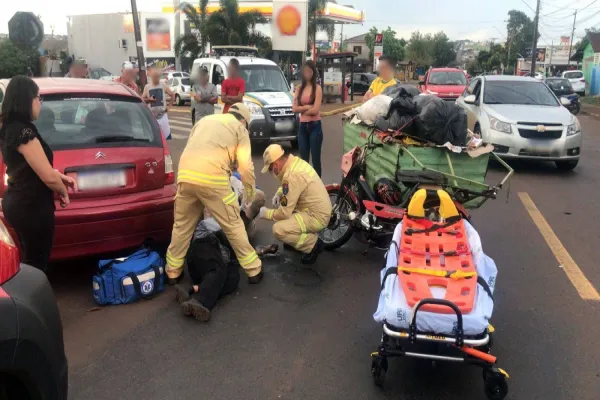 Com o impacto o idoso que carregava recicláveis acabou batendo com a cabeça no asfalto.