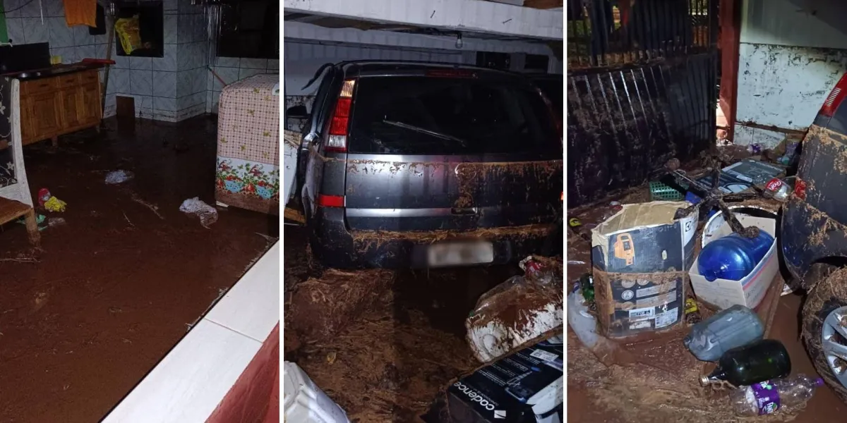 Na Rua Capanema a enxurrada fez o barranco ceder e derrubar o muro em cima de duas residências. O Córrego Aparecida na região do lago municipal transbordou e a água invadiu algumas residências.