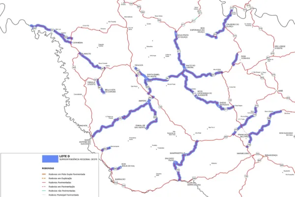 O edital contempla os lotes B, C, D e E do programa Proconserva na Superintendência Regional Oeste do DER-PR, e irá atender 70 municípios, somando aproximadamente 1,4 milhão de habitantes.