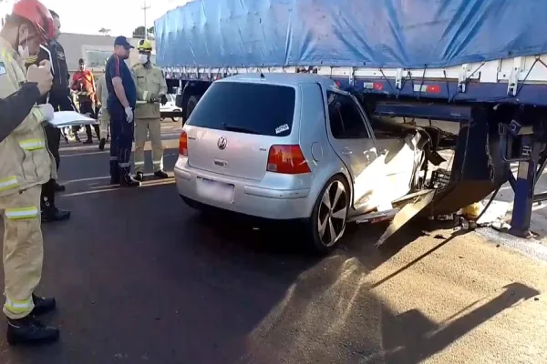 De acordo com populares, o automóvel VW/Golf seguia pela rodovia sentido Cascavel, momento em quem uma carreta foi atravessar a rodovia, acabou colidindo contra o carro.