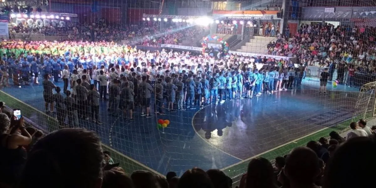 E o juramento do atleta foi feito pela jogadora de handebol Maria Eduarda Biscorovaine, da equipe Amancio Moro/Academia Estação do Corpo, junto com o atleta de futsal Felipe Antonio Francescon, do time Lojas Manica/Duque de Caxias.