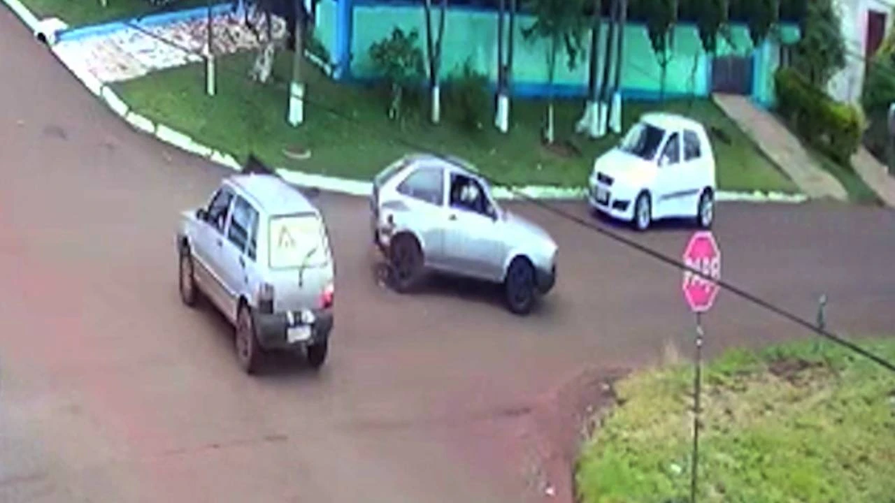 A batida foi registrada por uma câmera de segurança, aonde é possível ver que o automóvel VW/Gol seguia pela Rua Esmeralda, momento em que ao se aproximar do cruzamento com a Rua Agua-Marinha é atingido por um Fiat/Uno.