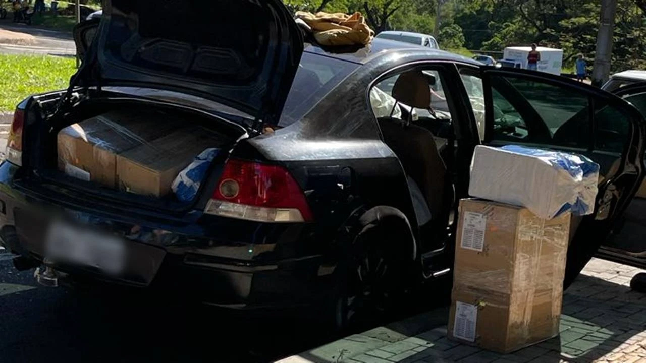Na residência roubada, haviam mercadorias. No carro dos assaltantes foram encontradas pistolas.
