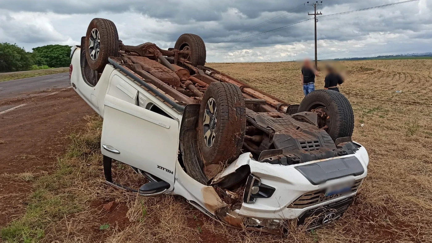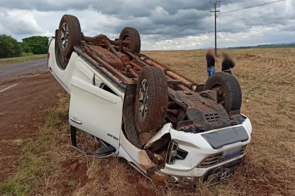 Um capotamento de veículo foi registrado no início da tarde desta terça-feira (22), na rodovia BR 467 aproximadamente 2 Km após o distrito de sede Alvorada e envolveu uma caminhonete Toyota Hilux com placas Mercosul.