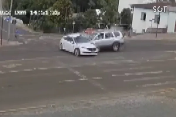Em um dos vídeos, é possível ver o momento em que o carro onde estavam mãe, filha e neto, reduz a velocidade em um cruzamento. Em seguida, após o veículo dar partida, é atingido por outro carro.