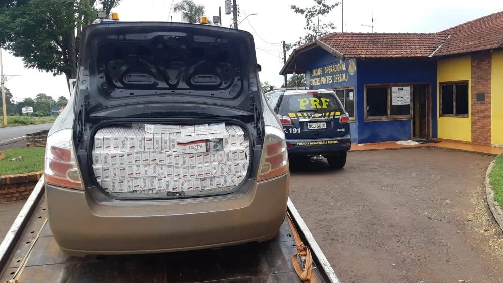 PRF apreende carro recheado de cigarros em Marechal Cândido Rondon