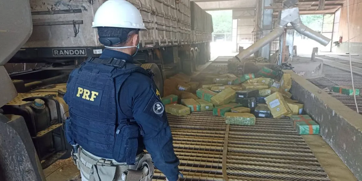 Já na segunda abordagem, num outro bitrem, carregado com fertilizantes em sacos big bag, chamaram a atenção dos policiais diversas caixas no fundo do compartimento de carga.