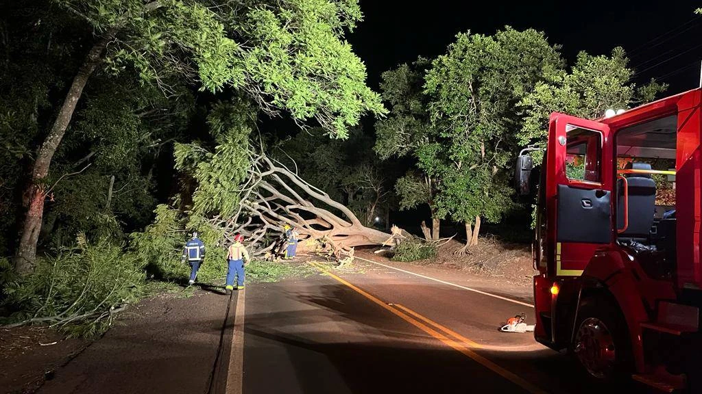 Equipes da Polícia Rodoviária Estadual foram acionadas na madrugada desta quinta-feira (01/12), na PR-182, próximo ao aeroporto em Toledo, onde árvores caídas estariam obstruindo totalmente a rodovia.