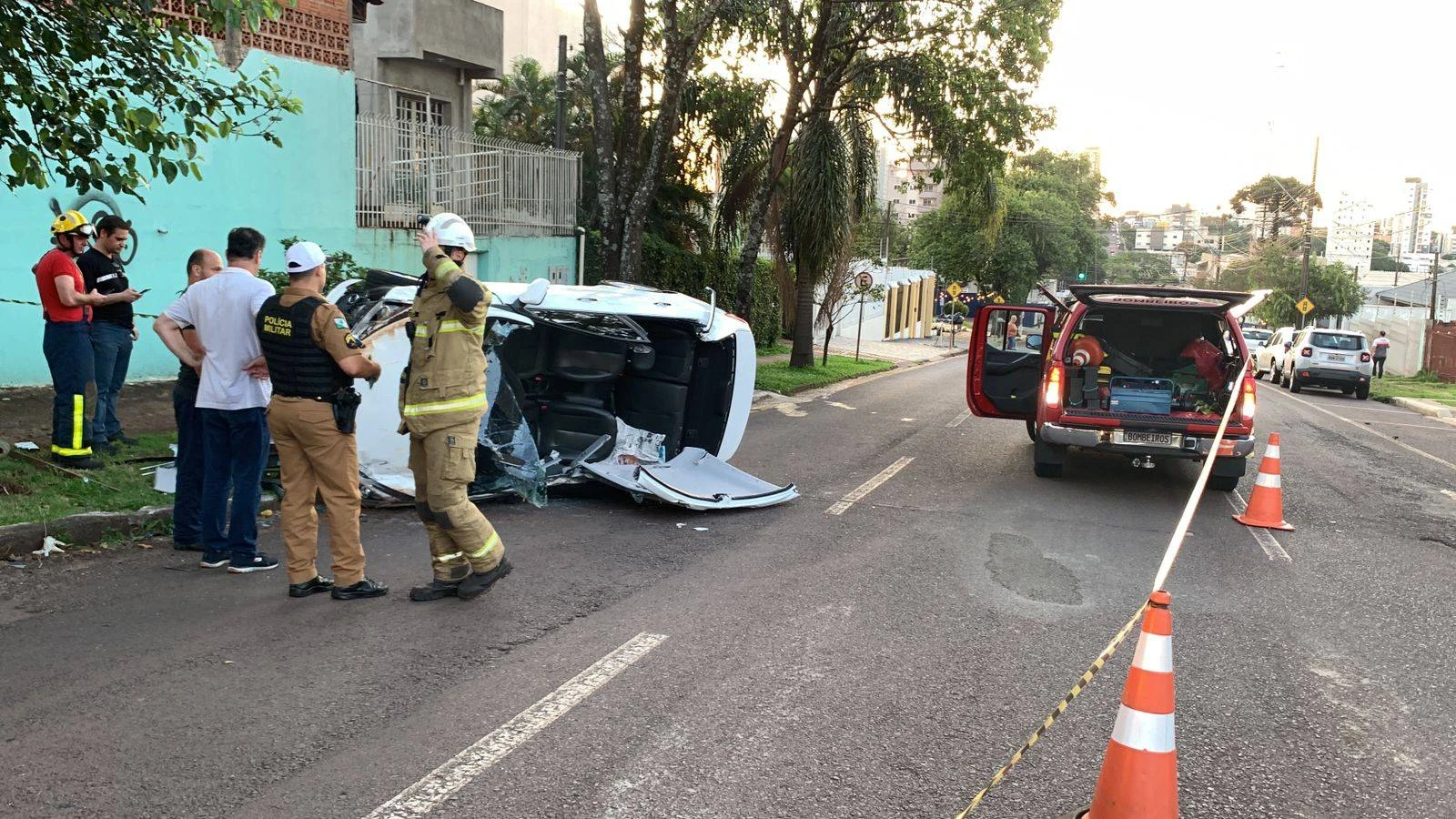 De acordo com informações de populares, a colisão aconteceu entre as Ruas Presidente Bernardes e Presidente Kennedy, envolvendo um HB20 e um Ford Fiesta. Após o fato, o HB20 acabou tombando deixando o condutor preso as ferragens.