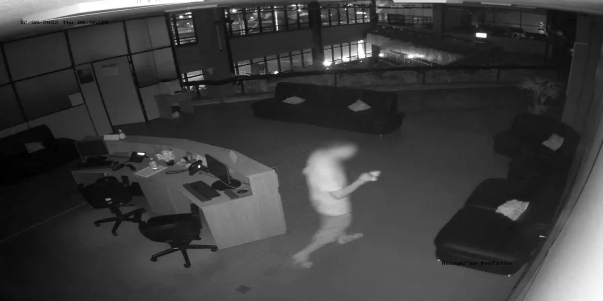 Ao chegar no gabinete do prefeito, o jovem quebrou a janela, aonde também acabou se cortando. Dentro da prefeitura, o rapaz percorreu alguns setores, adentrando a Secretaria de Comunicação, onde dois pendrives foram levados.
