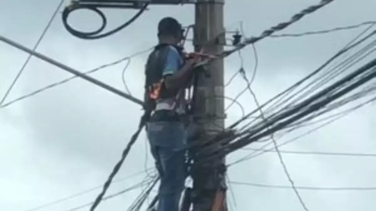 Nas imagens é possível ver o trabalhador tentando se soltar dos fios e equipamentos. Em seguida ele consegue se soltar e desce a escada com parte das costas ainda em chamas. As pessoas que passavam pelo local ajudaram a apagar o fogo.