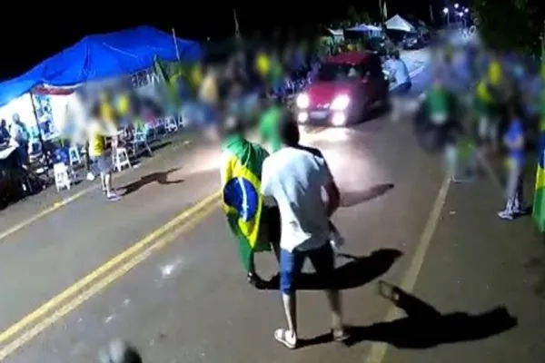 A ação foi registrada por câmeras de segurança que foram colocadas no local pelos manifestantes, aonde é possível ver o momento exato que o carro passa no local.