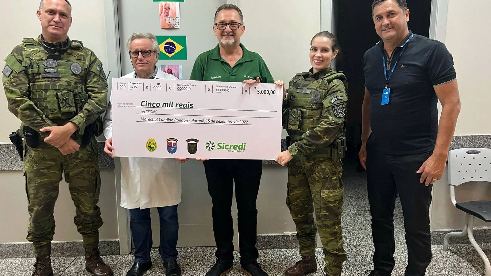 Na quinta-feira (15/12) o Comandante do BPFRON - Batalhão de Polícia de Fronteira Tenente - Coronel André Cristiano Dorecki fez a entrega simbólica de R$5.000,00 ao CEONC Hospital do Câncer de Cascavel-PR.