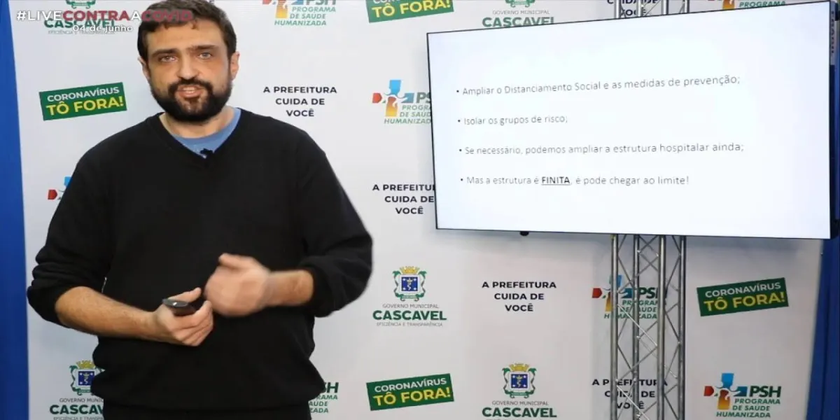 Na oportunidade, Stefanello foi bem enfático em pedir a colaboração de toda a comunidade para que a saúde não entre em colapso. “A estrutura é finita. Se não houver o distanciamento necessário, se não praticarmos os isolamentos dos grupos de risco, pode chegar no momento em que HU, Hospital de Retaguarda, hospitais privados, a região Macro Oeste e Hospital de Campanha fiquem sem leitos. E aí, é quando começam a morrer pessoas por falta de atendimento”.