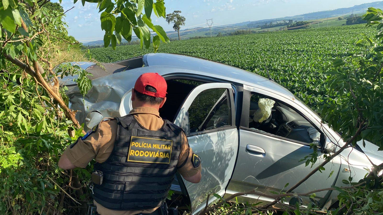 Medianeira: Uma pessoa é socorrida em estado grave após capotamento na PR-495