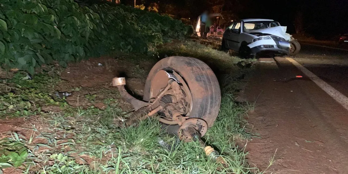 De acordo com informações de populares, a colisão frontal envolveu um VW/Gol e um Chevrolet Cruze na altura do KM361 na comunidade do Pinhalzinho. Com a força do impacto, uma das rodas do Cruze acabou saindo do veículo que também ficou com a parte frontal destruída.