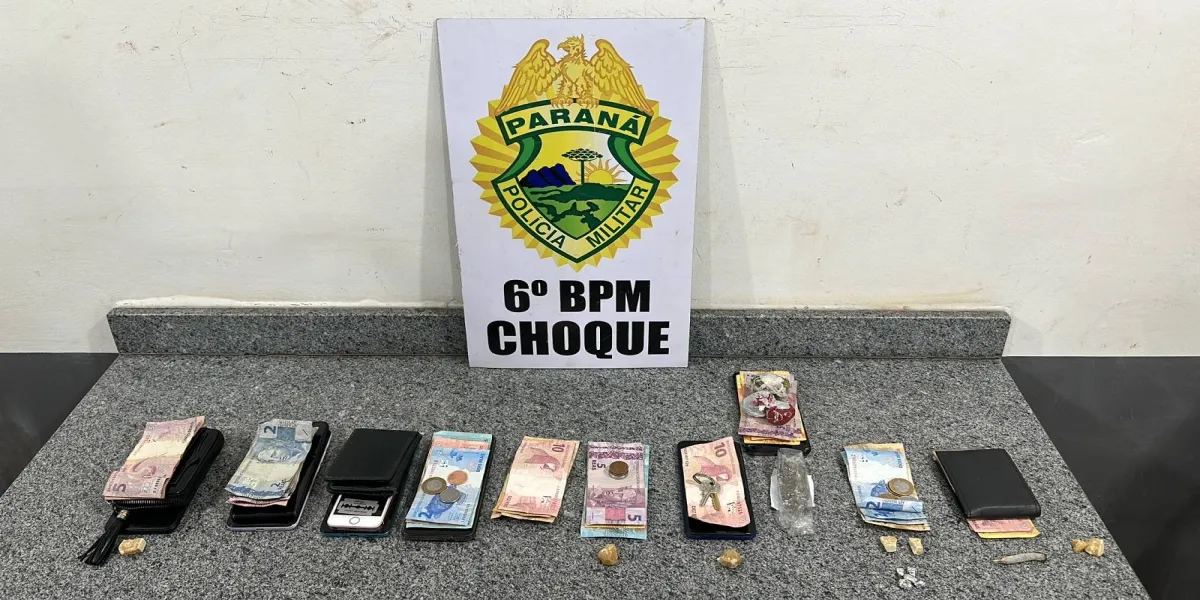 Foi apreendido pedras de crack, porções de maconha e dinheiro que, com os detidos...