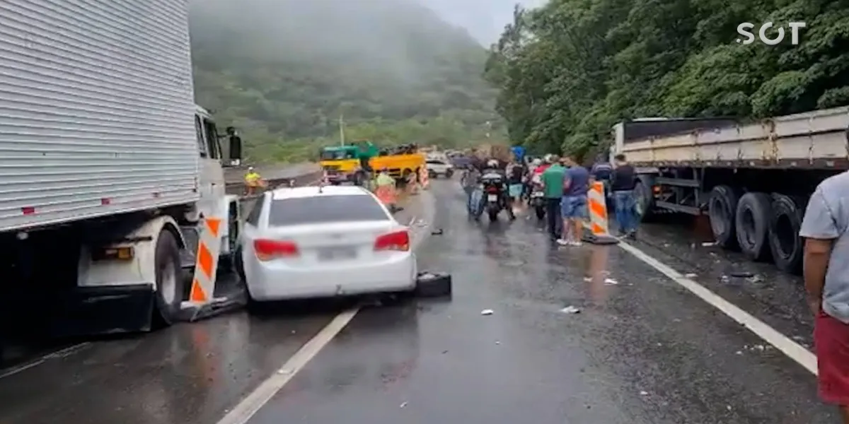 A chuva persistente provocou um engavetamento na tarde de sexta-feira (23/12), em ambos os sentidos da BR-376, entre o Paraná e Santa Catarina.