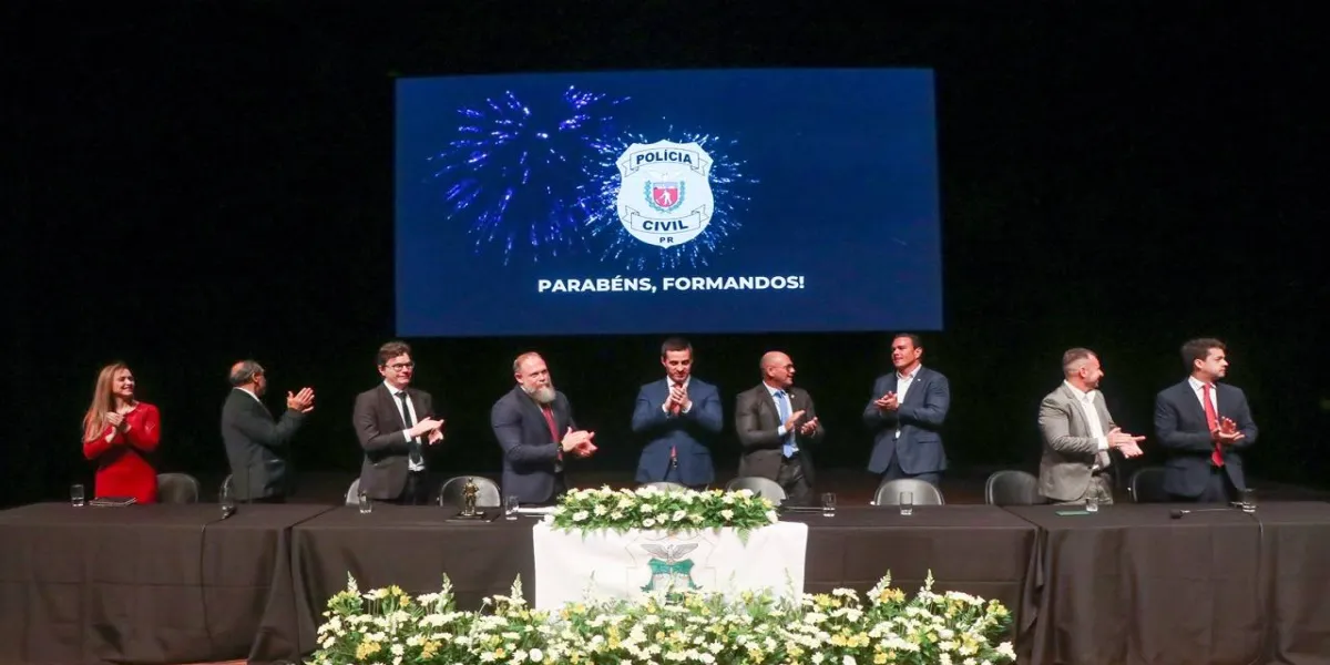A Polícia Civil do Paraná (PCPR) formou 400 policiais civis nesta sexta-feira (23), no Teatro Guaíra, em Curitiba. A turma de formação faz parte de contratação histórica. Ao todo são 150 delegados, 200 investigadores, 50 papiloscopistas e 25 escrivães.