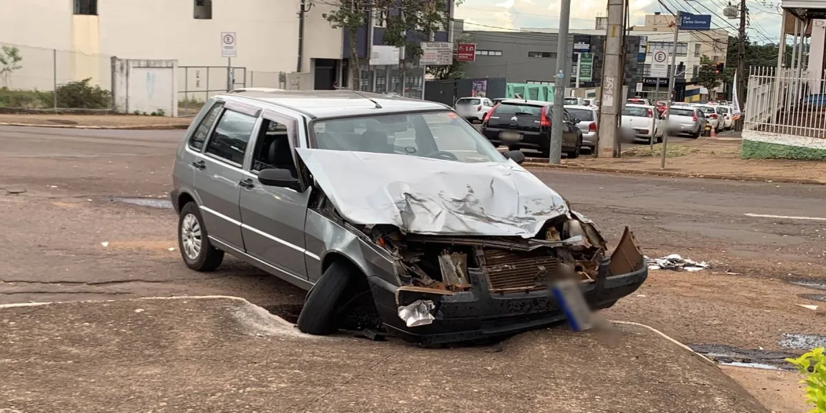 Forte colisão de trânsito deixa Uno destruído na Avenida Carlos Gomes em Cascavel