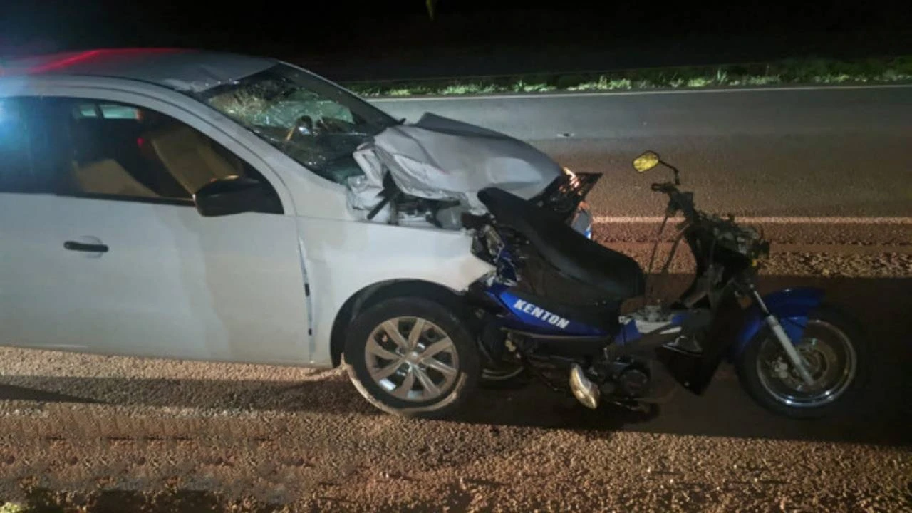 O acidente foi registrado por volta das 2h, na altura do km 665, próximo ao SAU, e envolveu um veículo Gol e uma motoneta Kenton.