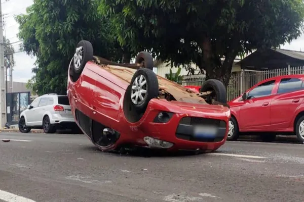 A batida ocorreu no cruzamento da Rua Vitória com Rua Marechal Cândido Rondon e envolveu dois automóveis Fiat Palio, vindo um destes capotar.