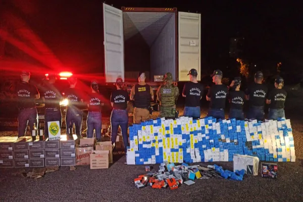 PM e PRF apreendem caminhão carregado com 980 celulares e 419 garrafas de bebidas em Cascavel